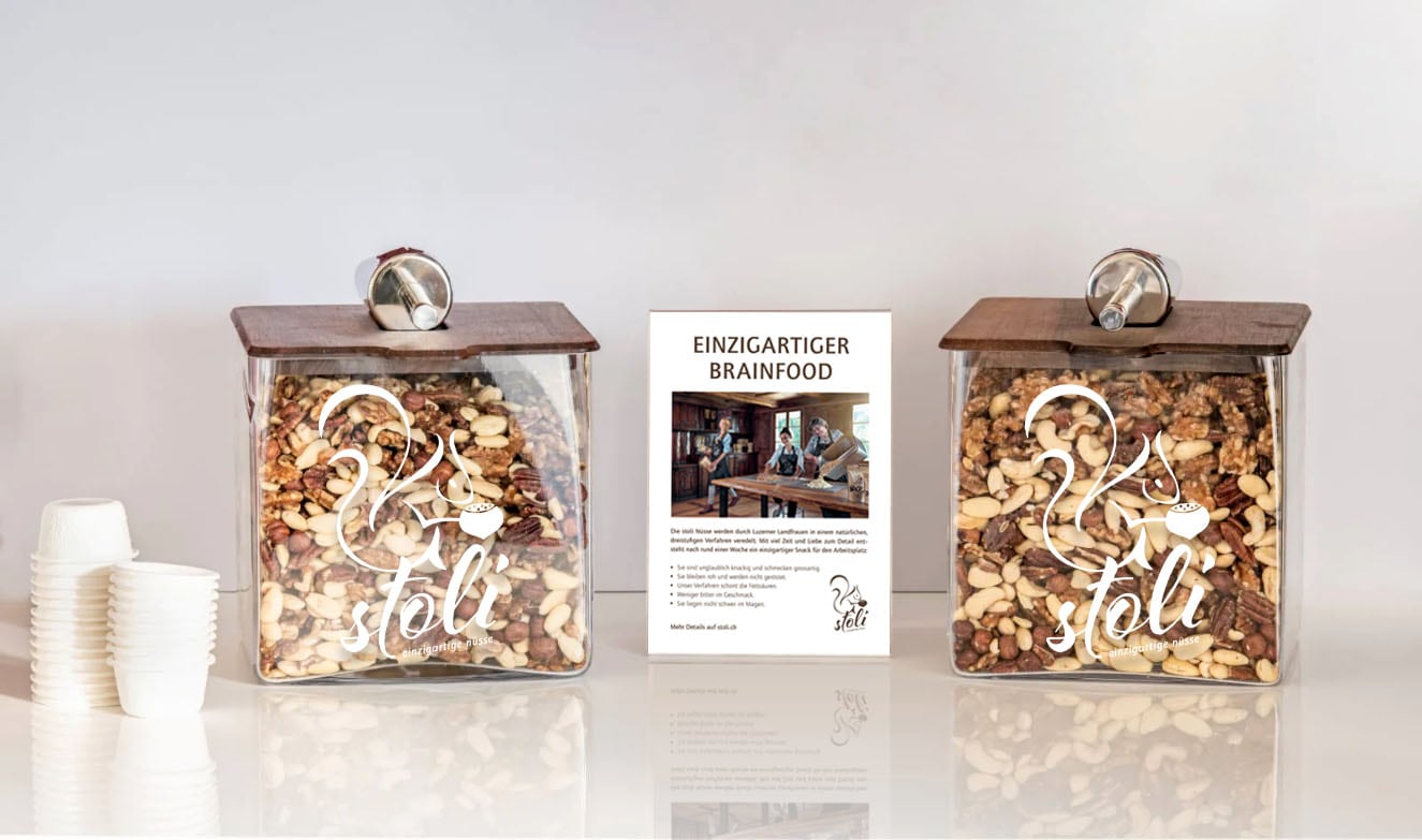 Idéal si votre entreprise souhaite offrir des noix gratuitement à ses employés. Comment ça marche ? Nous vous fournissons gratuitement les cubes en verre (20 × 20 × 20 cm) et vous pouvez commander des sachets de 6 000 ml pour les remplir. Les employés prélèvent les noix dans les distributeurs en verre gratuits, dans des bols compostables ou simplement dans leurs mains. La cuillère intégrée au couvercle les empêche de les attraper avec les mains.